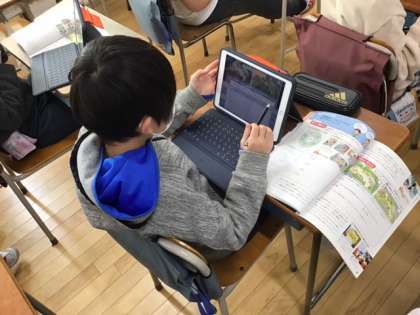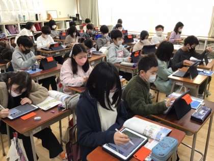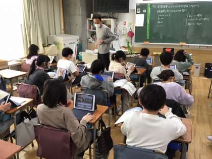保健の時間です。犯罪被害は、どのようにすれば防止できるのか、資料をもとに考えています。