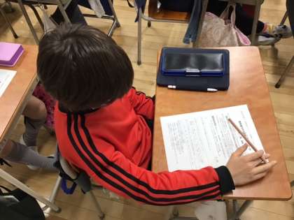 学級活動の時間です。「新年度クラブ設置希望アンケート」を行っています。来年度は、クラブ活動を引っ張っていく立場になりますね。