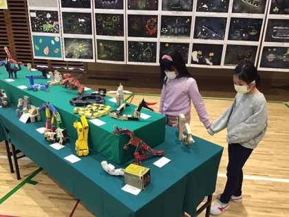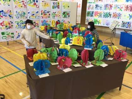2年生は、初めての展覧会です。目をキラキラさせて、鑑賞しています。
