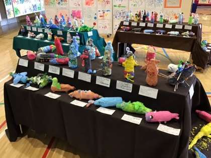 立体作品「こんにちは。たびしてあった なぞのせいぶつ」