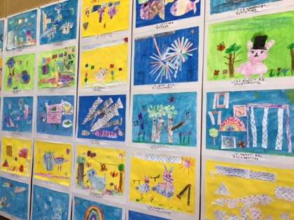平面作品「スタンプ スタンプ」「見てみたい! 行ってみたい!」