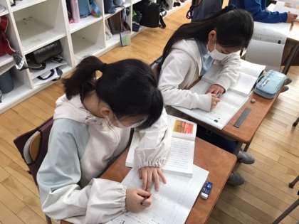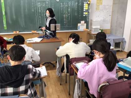 国語の時間です。「大造じいさんとガン」大造じいさんの心情の変化を、本文を根拠にして整理しています。