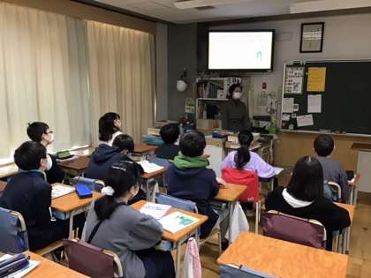 外国語の時間です。今日のチャンツは、「中学校でやりたいこと」です。卒業まで、1ヶ月になりましたね。