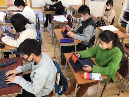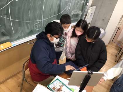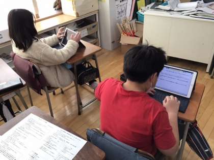 総合的な学習の時間です。「あなたがこの国を支援する立場だとしたら、どのように支援しますか?」 様々な角度から考えています。