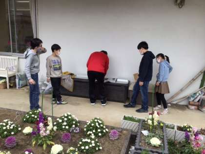 グループ学習の時間です。音読や栽培活動に取り組んでいます。
