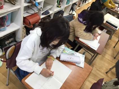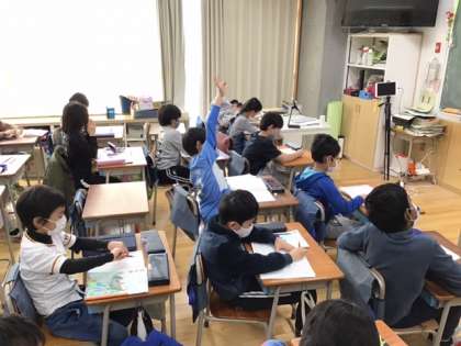 国語の時間です。「わたしたちの学校じまん」伝えたい内容をはっきりさせて、説得力のある説明にしましょう!