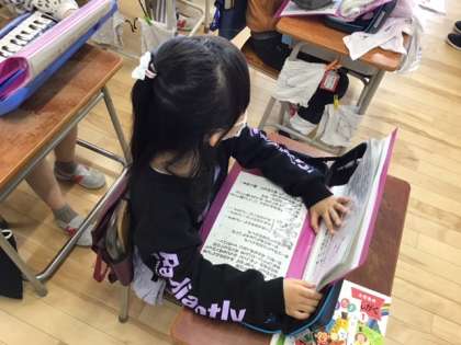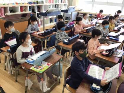 音楽の時間です。「ありがとうの花」すてきな歌詞ですね。