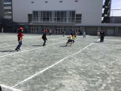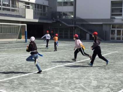 体育の時間です。「タグラグビー」です。工夫した良い動きが、どんどん出るようになってきました。