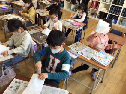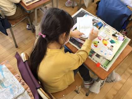 図工の時間です。「あそぼうよ パクパクさん」パクパクの仕組みを生かして、作り方を工夫します。