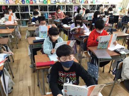 国語の時間です。「モチモチの木」一生懸命に音読をしています。家庭学習でも習慣になるとよいと思います。