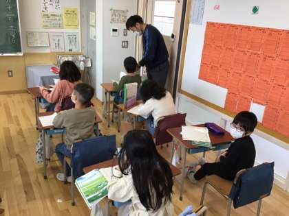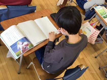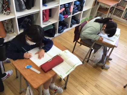 国語の時間です。「スーホの白い馬」一番心を動かされた場面について、その理由を書いています。
