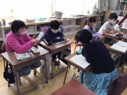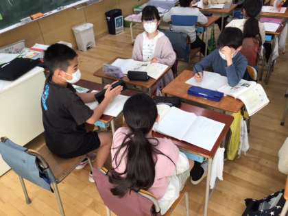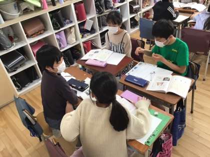 国語の時間です。「調べて話そう、生活調査隊」生活に関する疑問をグループで調査して、クラスのみんなに発表します。