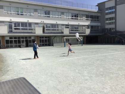 生活科の時間です。今日は、2、3組のたこあげ大会です。
