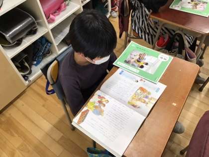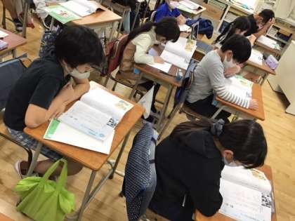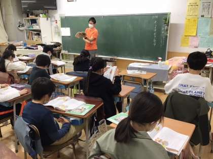 道徳の時間です。「ネコの手ボランティア」自分は、どんなボランティア活動ができるのかを考えています。