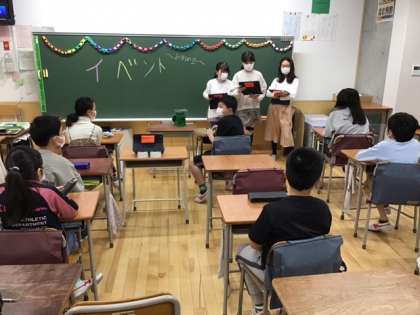 学級活動の時間です。このクラスとのお別れイベント開催中です。