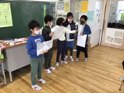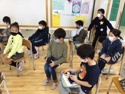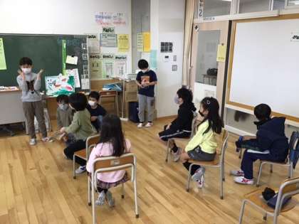 学級活動の時間です。お楽しみ会が始まっています。7つの出し物が用意されています。