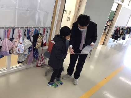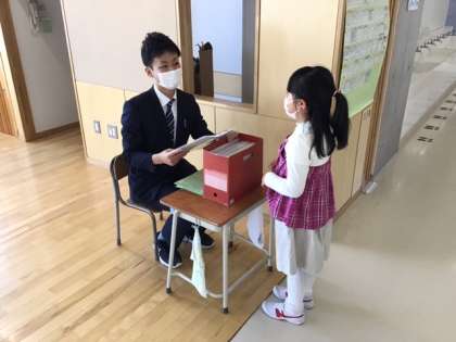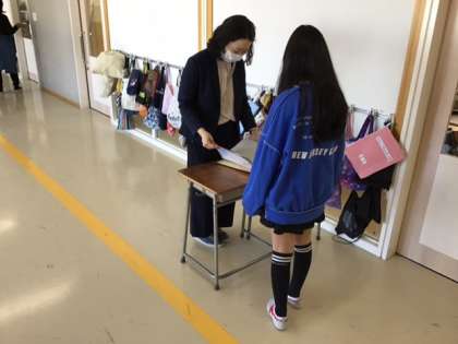 担任の先生から、一人一人に通知表が渡されました。1年間の成長の足跡が残されていますね。