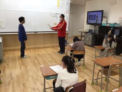 くるみ学級では、6年生が卒業式での作法のように修了証書を受け取りました。下級生から大きな拍手が起こりました。