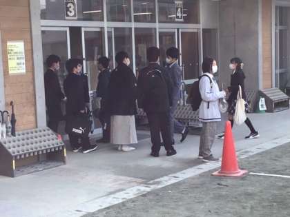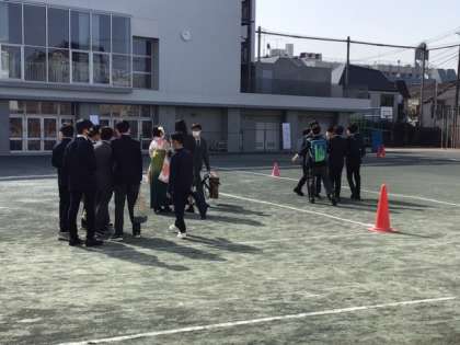 卒業生が登校してきました。晴れやかな表情がすてきですね。