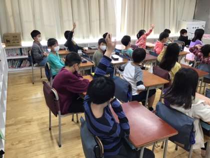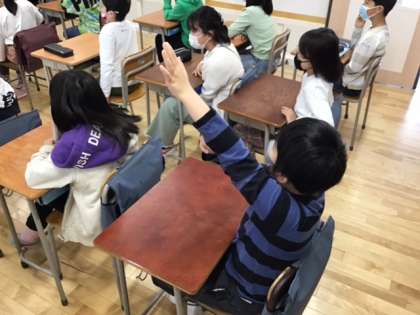 みんなでどんどん先生に質問をしています。楽しい一年になりそうですね。