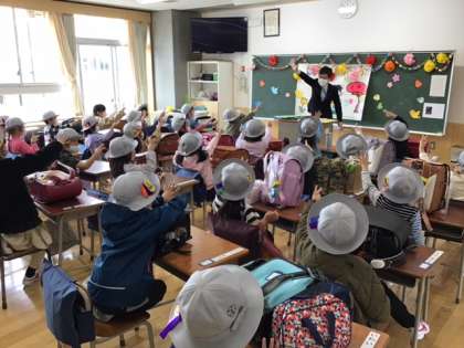 少し緊張したけれど、楽しく過ごせましたね。このあと、コース別の下校になります。明日も元気に登校してください。