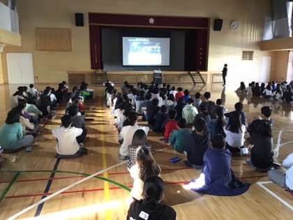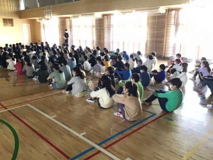 5、6年生が体育館に集まり、委員会オリエンテーションを行っています。高学年のみなさんの力で、下北沢小学校をもっともっとよい学校にしていってください。