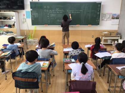 算数の時間です。「1年生の復習」をしています。みんなよくできていますね。