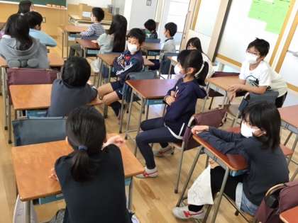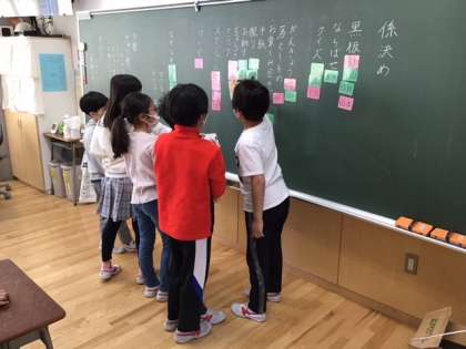 学級活動の時間です。係決めをしています。お互いに協力したり譲り合ったりしながら決めることができました。思わず拍手が起こりました。