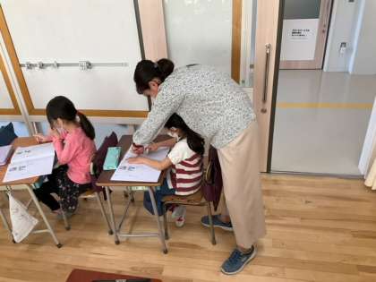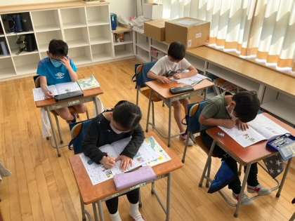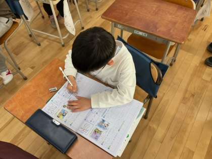 国語の時間です。漢字の学習をしています。画数の多い漢字に挑戦しています。