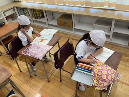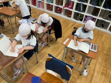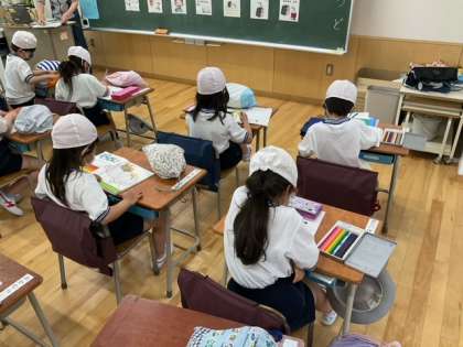 初めて体操服に着替えました。このあと、校庭に出てみます。