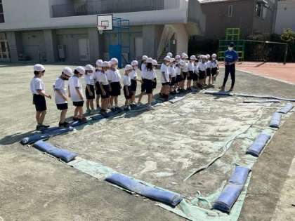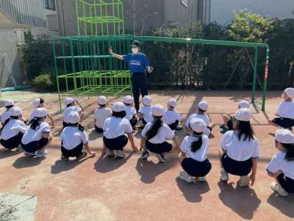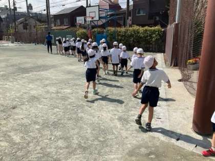 体育の時間です。体操服に着替えて、校庭に出ました。校庭には、何があるのかな?