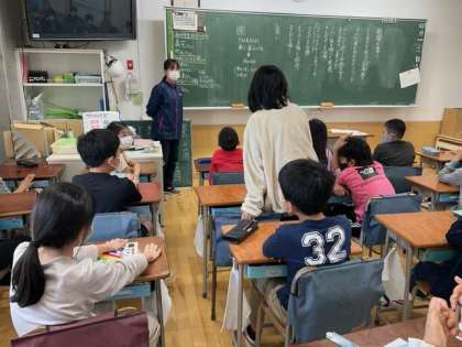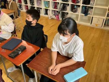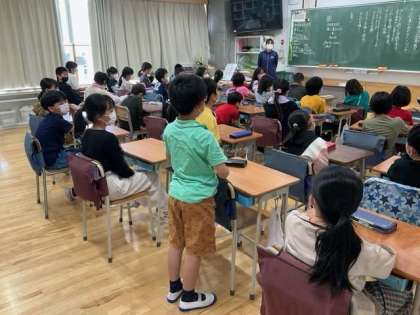 学級活動の時間です。係活動について意見を出し合っています。クラスをより良く楽しくするため、大切な話し合いです。