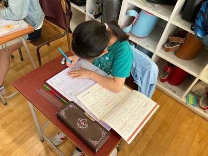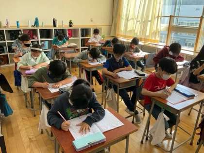 朝のモジュールは、国語の時間です。今日は、漢字練習に取り組んでいます。