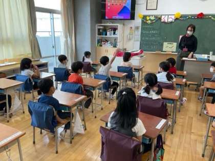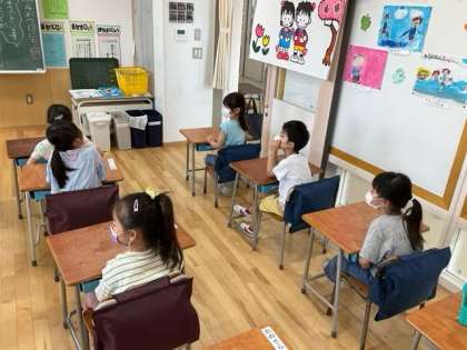 毎朝、健康観察をしています。一人一人元気なあいさつで応えています。