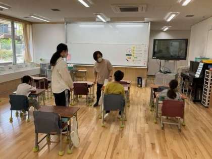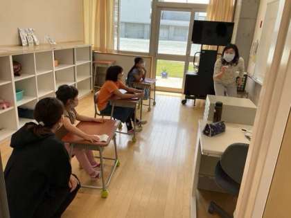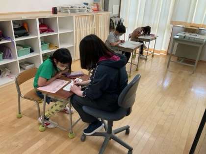 グループ学習の時間です。離任式に向けて、離任された先生へのお手紙を書いています。たくさんの思い出がありますね。