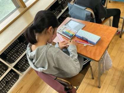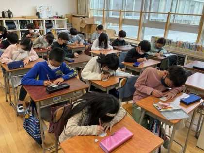 学級活動の時間です。1年生を迎える会に向けて、5年生から1年生にお手紙を書いています。