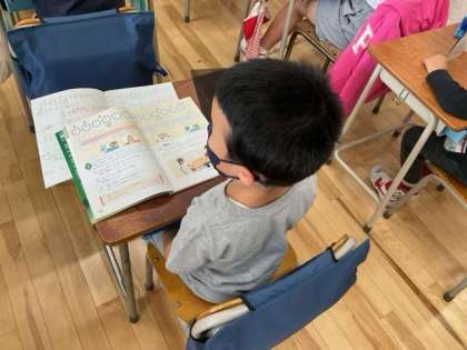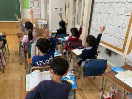 算数の時間です。「時こく と 時間」起きた時刻と寝た時刻をそれぞれ午前、午後をつけて言います。