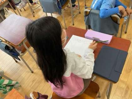 理科の時間です。今日は、春の生き物を観察します。興味をもった生き物をiPadで写真に撮ります。