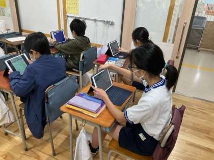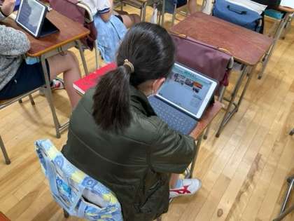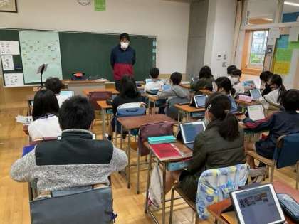 社会科の時間です。今まで日本国憲法について学習を進めてきました。今日は、日本国憲法が生活の中でどのように生かされているのかをまとめます。