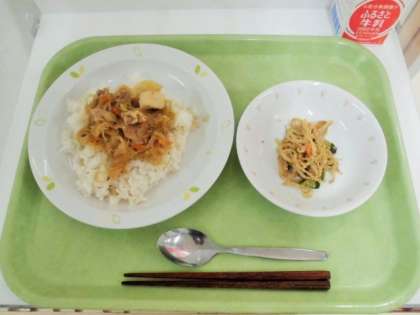 献立 豚丼、もやしのごま酢和え、牛乳