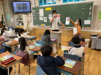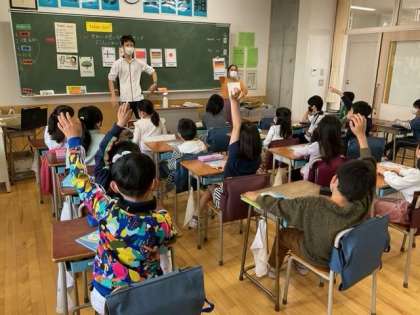 外国語活動の時間です。この国はどこでしょう。その国の言葉で、あいさつができるかな?