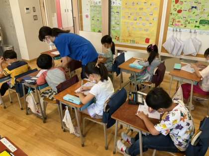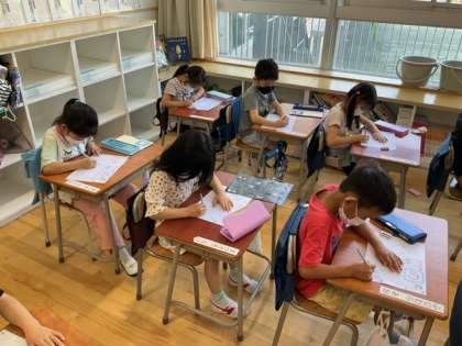 国語の時間です。「ひらがな名人」を目指して、集中して学習に取り組んでいます。