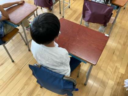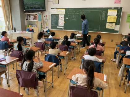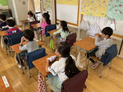 生活科の時間です。これから学校探検に出かけます。楽しみですね。