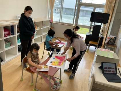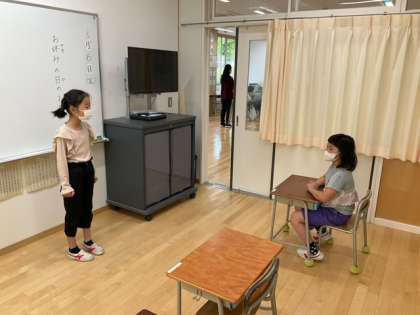 グループ学習の時間です。「休みの日の1日」をテーマに、スピーチをしているグループもありますね。