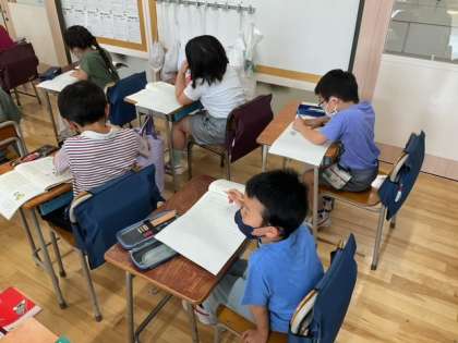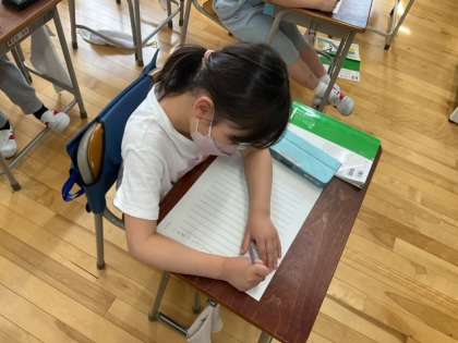 国語の時間です。「きょうの できごと」1日をどんなふうに過ごしたかな? 思い出して書いてみましょう!
