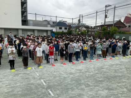 ゴールデンウィークが終わりました。今日の全校朝会では、計画委員から運動会のスローガンが発表されました。