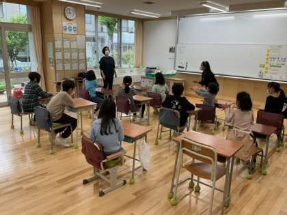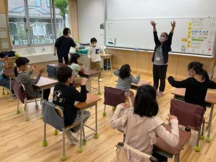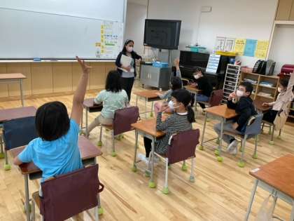 外国語活動の時間です。英語で朝のあいさつをして、元気に1週間が始まりました。