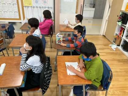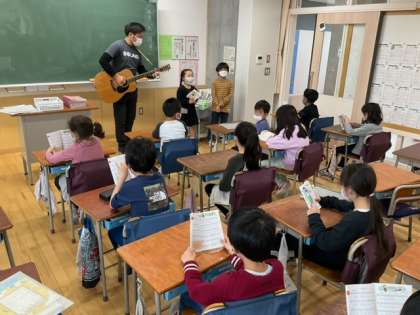 先生のギター伴奏で、朝の歌を歌って1日がスタートしました。