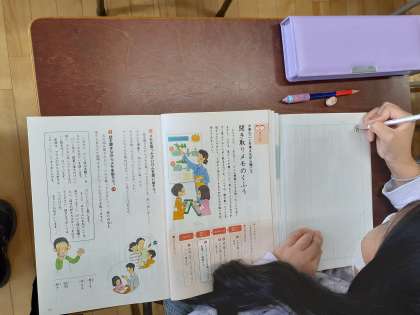 国語の時間です。新しい単元になり、ノートを見開きにして丁寧に書いていました。大事なことをどのように聞くとよいのかを学習していきます。