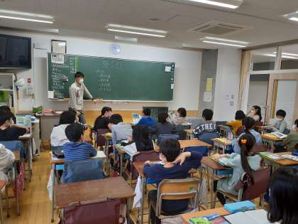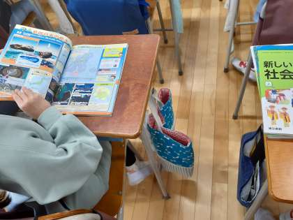 社会の時間です。嬬恋村の人々の生活について、調べる方法やまとめ方を考えて学習を進めています。